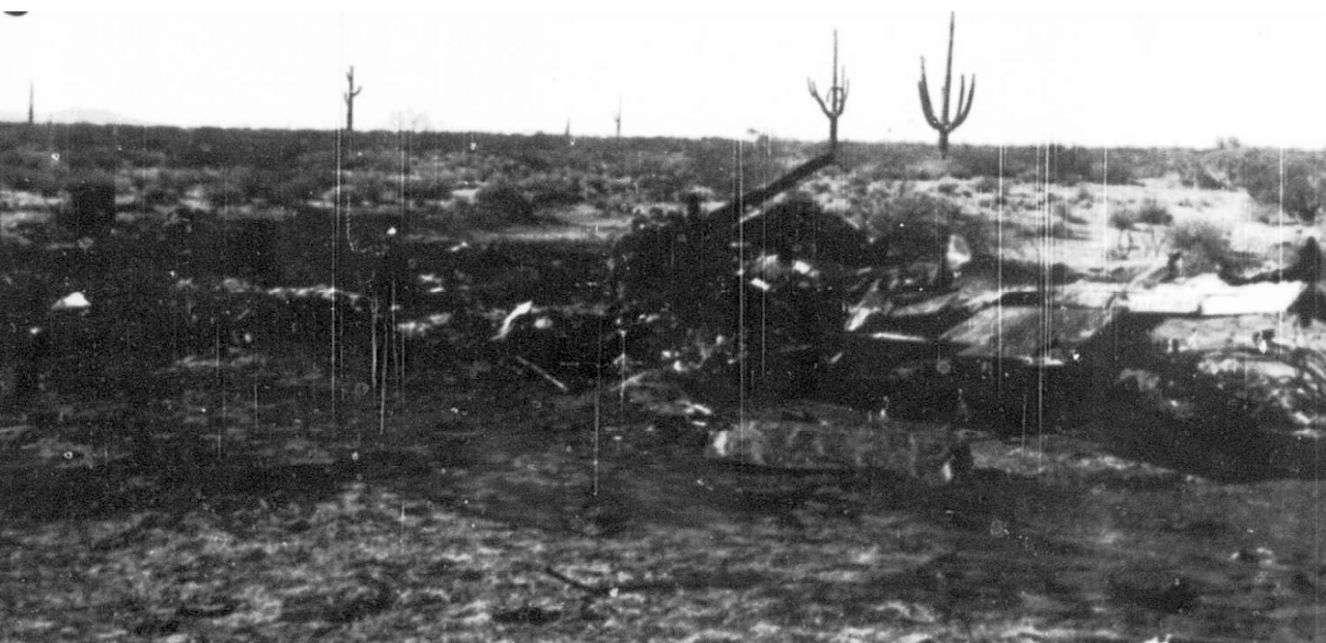 A 12/11/54 photo (courtesy of Bob McCutchen) of the site of the first USAF Thunderbird fatality which occurred when Captain George Kevil crashed his Republic F-84G into the area around Luke Aux #4.
