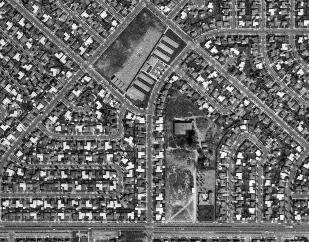A 1964 aerial view of Mile Square, from the Anaheim Library (courtesy of Scott O'Donnell).