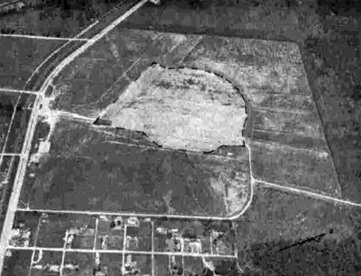 A circa 1957 aerial view looking southwest (courtesy of Gary Frey) showing the original Alvin Callender Airport in the foreground