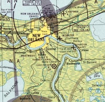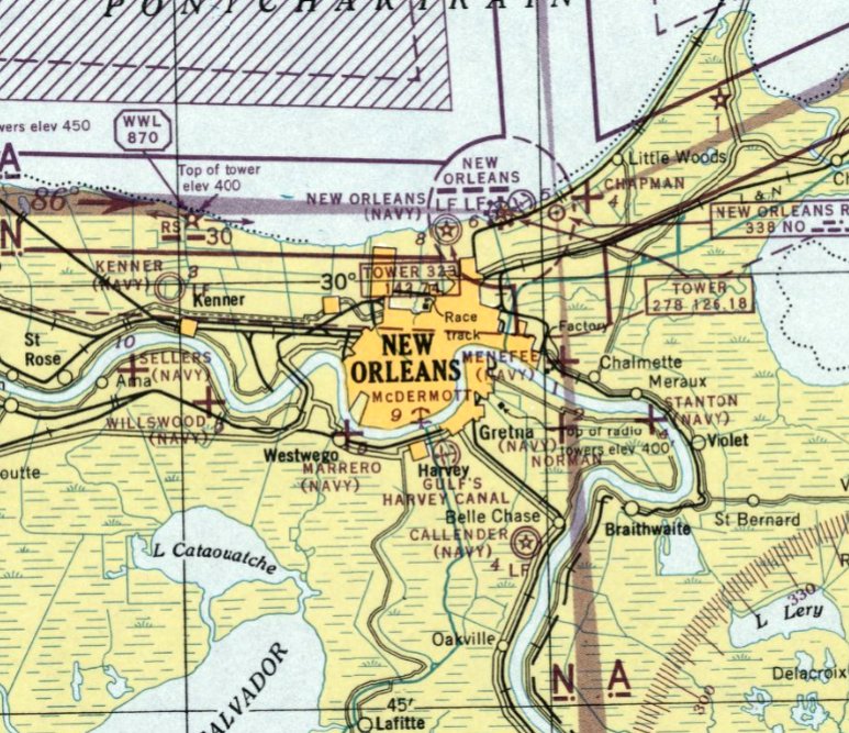 The field was labeled "New Orleans" Landing Field on the 1934 Navy Aviation Chart V-242 (courtesy of Chris Kennedy).