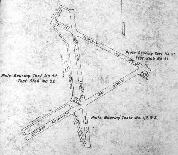 depicted the location of 30” plate bearing tests & concrete slabs on Alvin Callender Airport.