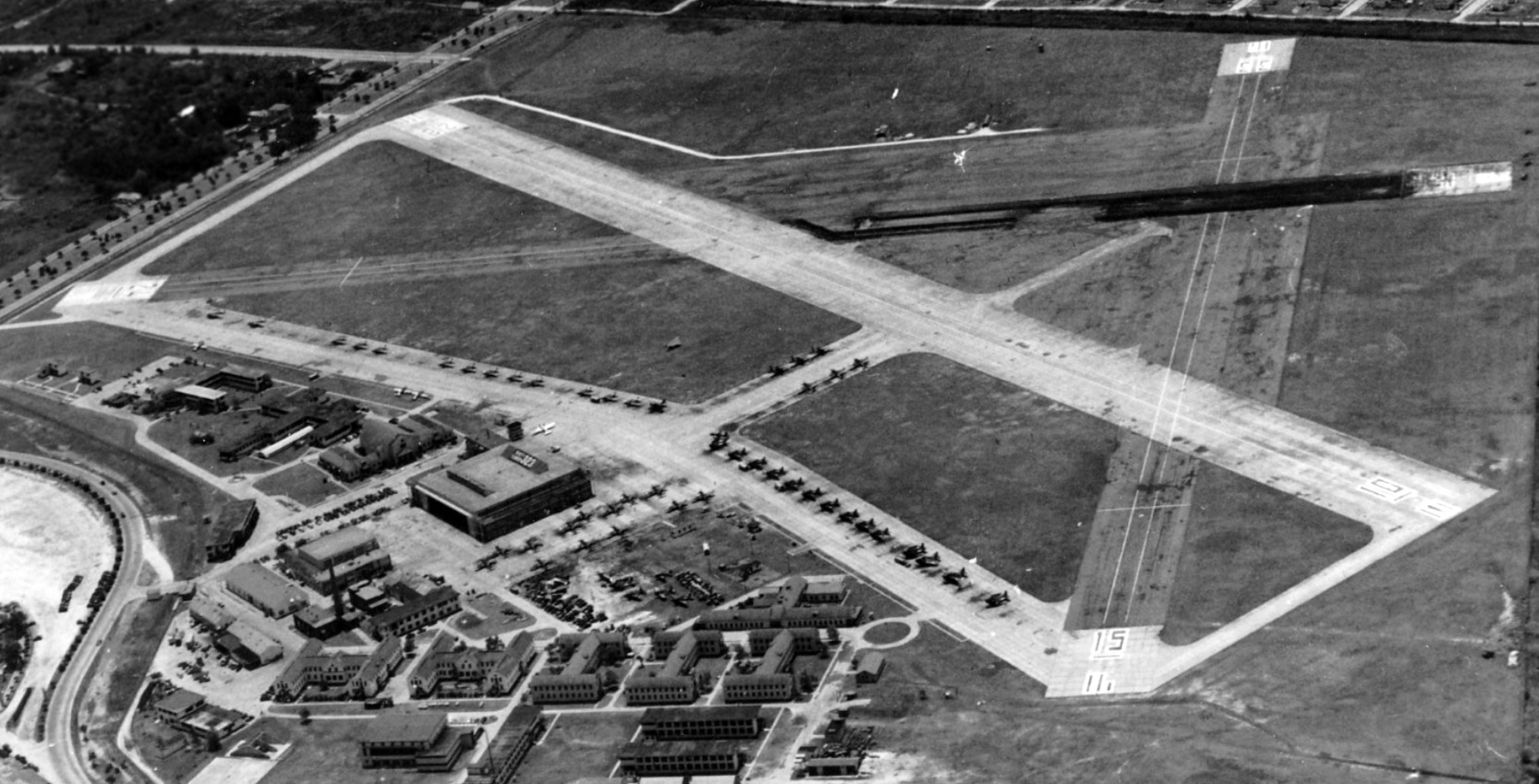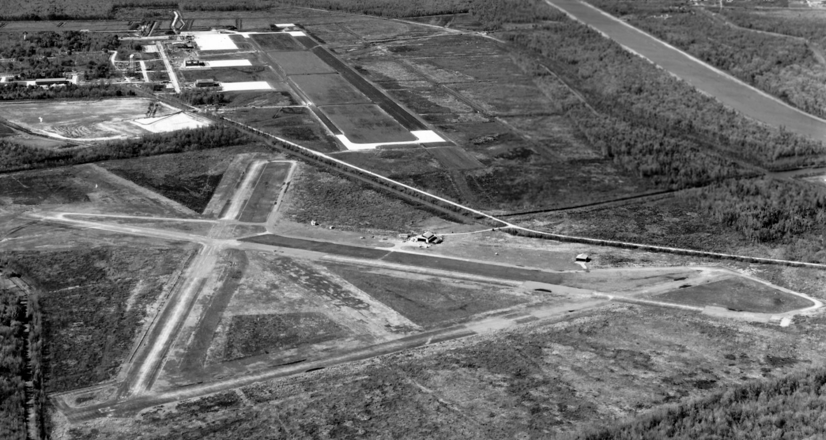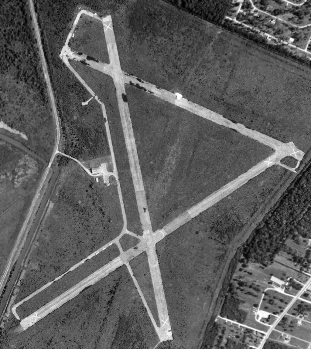 The 1966 USGS topo map no longer depicted any of the runways, instead showing roads & newly-constructed buildings,