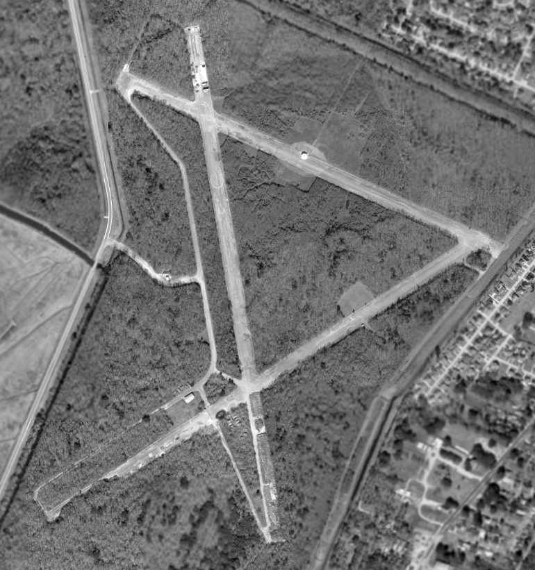 A 2/20/64 USGS aerial photo showed the old NOLF airfield consisted of 3 paved runways (the longest is 5,200'), taxiways, and the remains of a ramp north of the East/West runway.