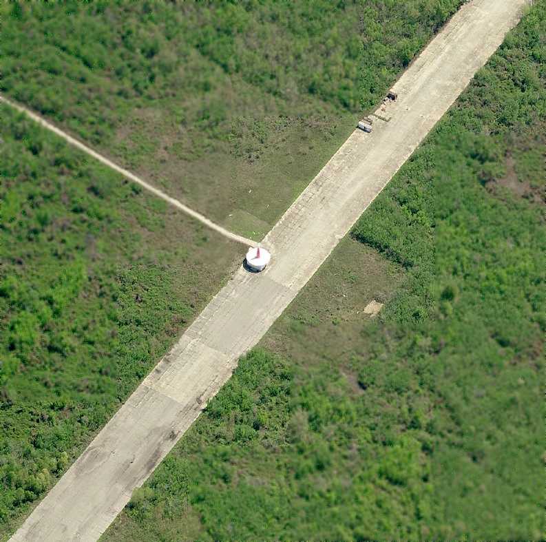 with trace of the northwest/southeast runway still recognizable, along with the landing mat.