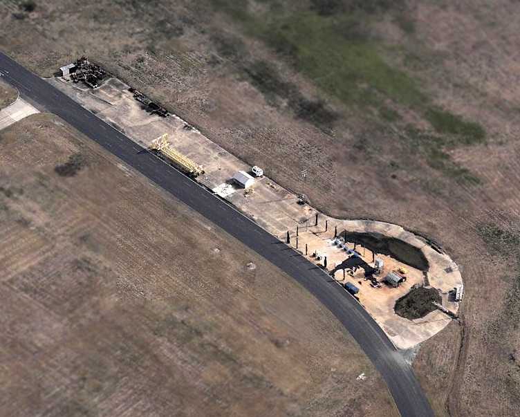 It’s easily identifiable by the aircraft tie-downs that are still in the parking lot below.”