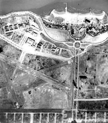 The multiple runways & single hangar of the former NAS New Orleans were still visible in a 1960 aerial view (courtesy of Carl Hennigan).