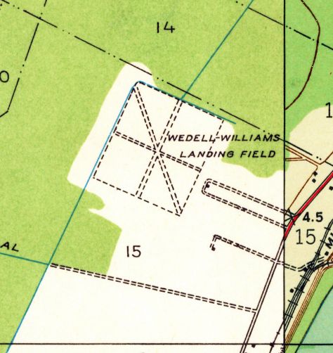 It depicted the “Wedell-Williams Landing Field” as being a square outline with 3 unpaved runways.