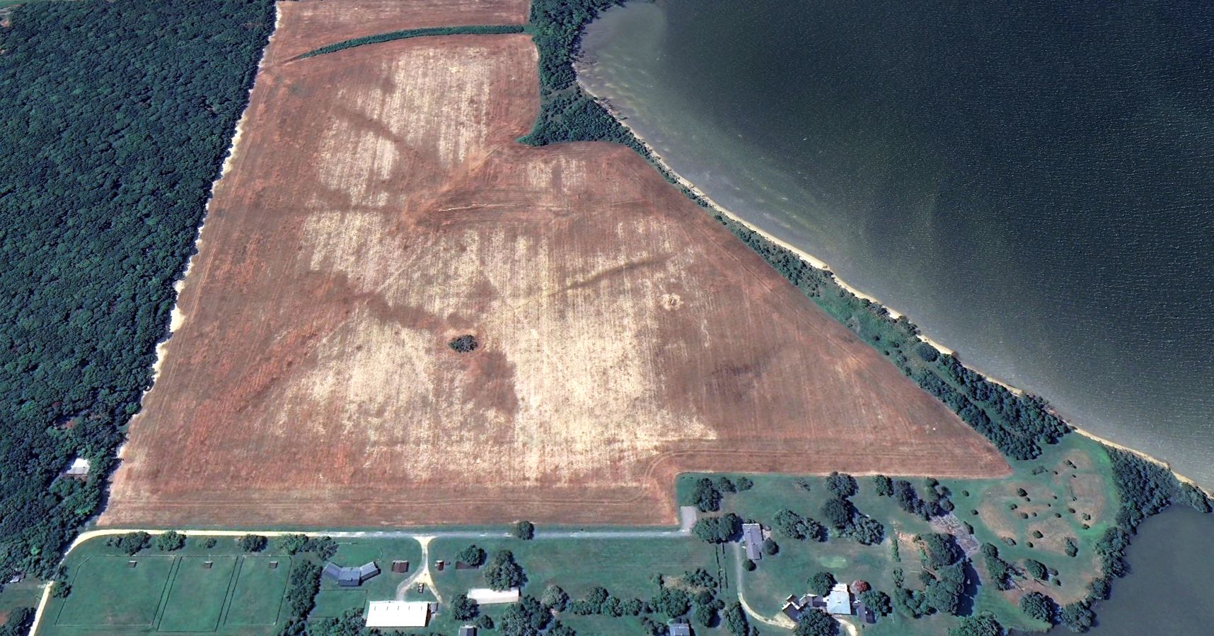 A 2013 aerial view looking north depicted Horn Point Aerodrome as remaining intact, including its 3 grass runways & the small buildings on the west side.