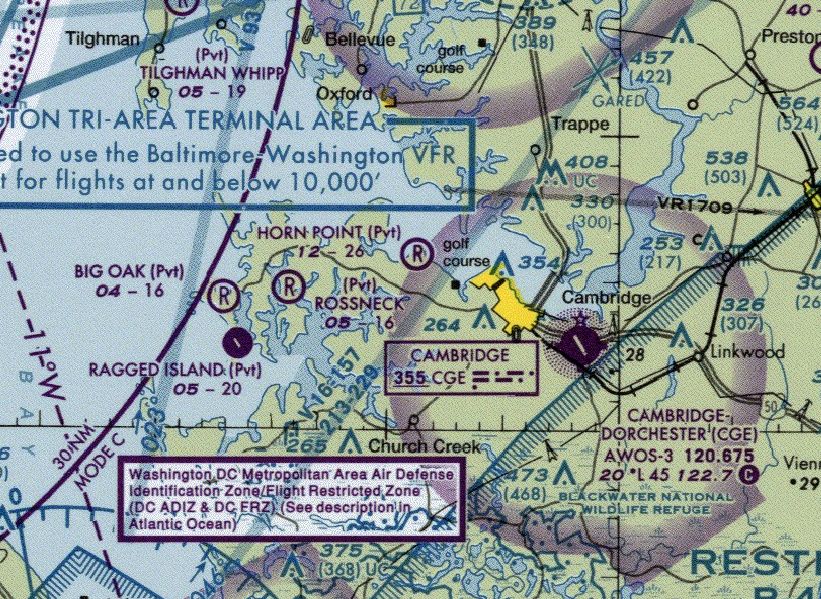 The last aeronautical chart depiction which has been located of Horn Point Aerodrome was on the 2008 Washington Sectional Chart (courtesy of Jonathan Westerling).