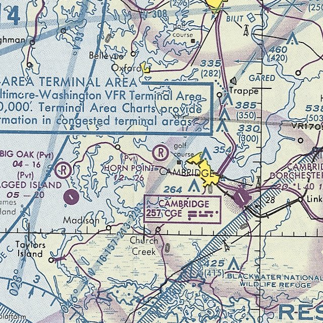 The Horn Point Aerodrome was not depicted on Washington Sectional Charts from the 1950s thru 1971.