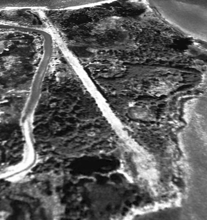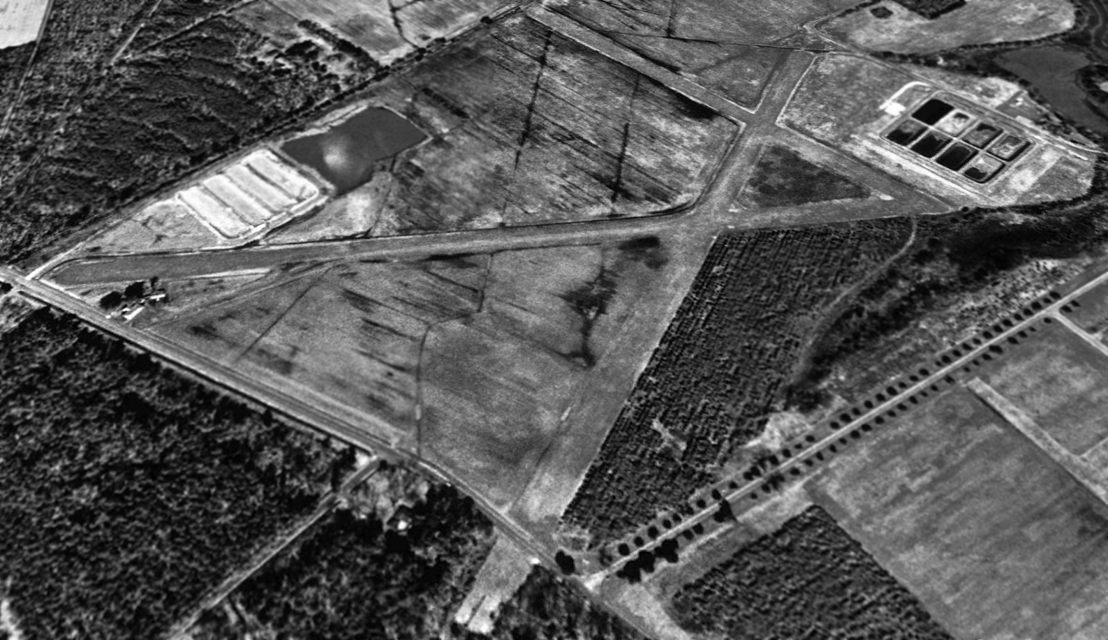 A 1982 aerial view did not show anything recognizable as a former airfield.