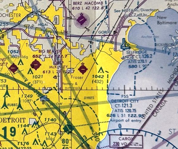 as the December 1947 Detroit Sectional Chart (courtesy of Chris Kennedy)