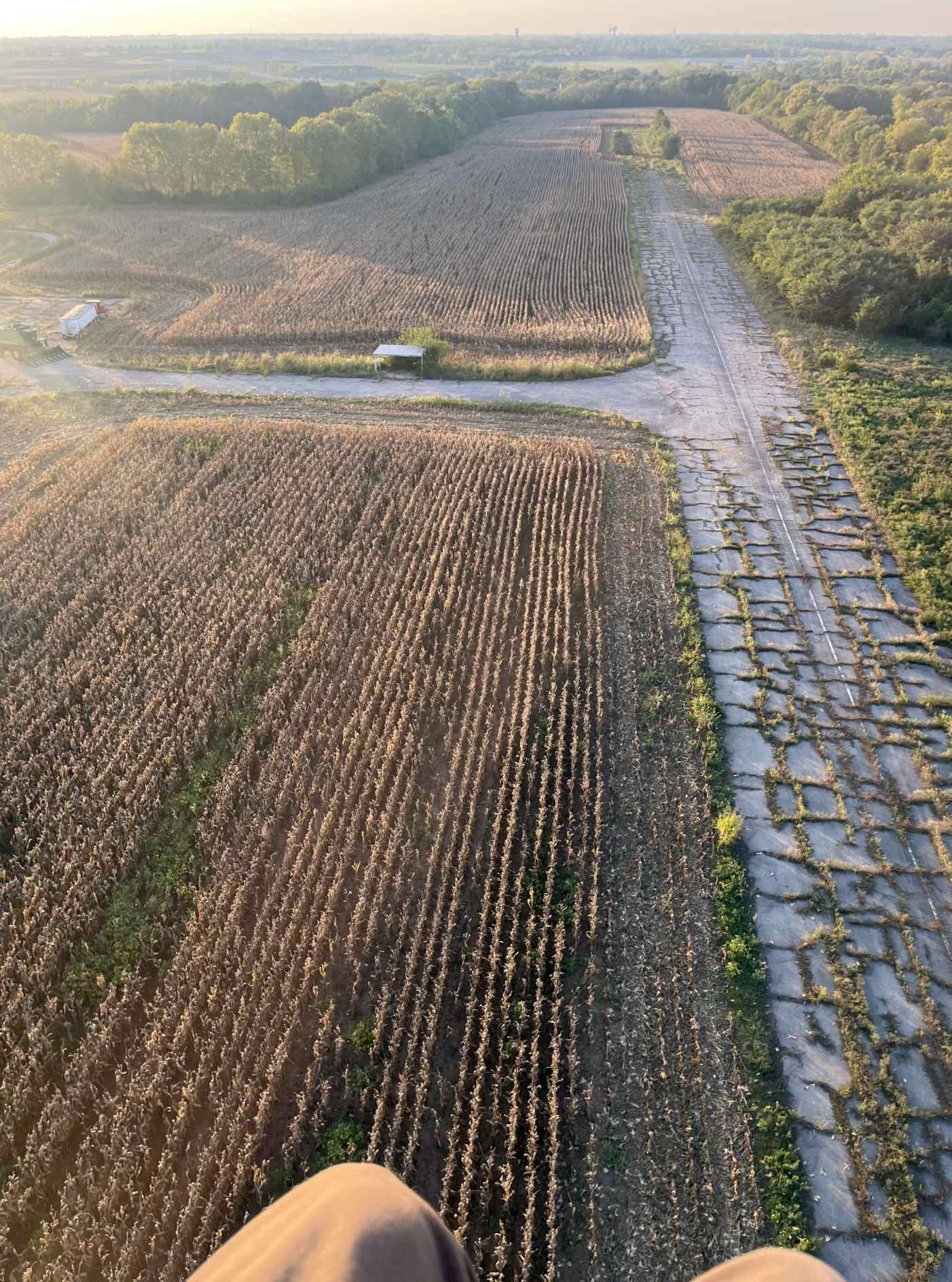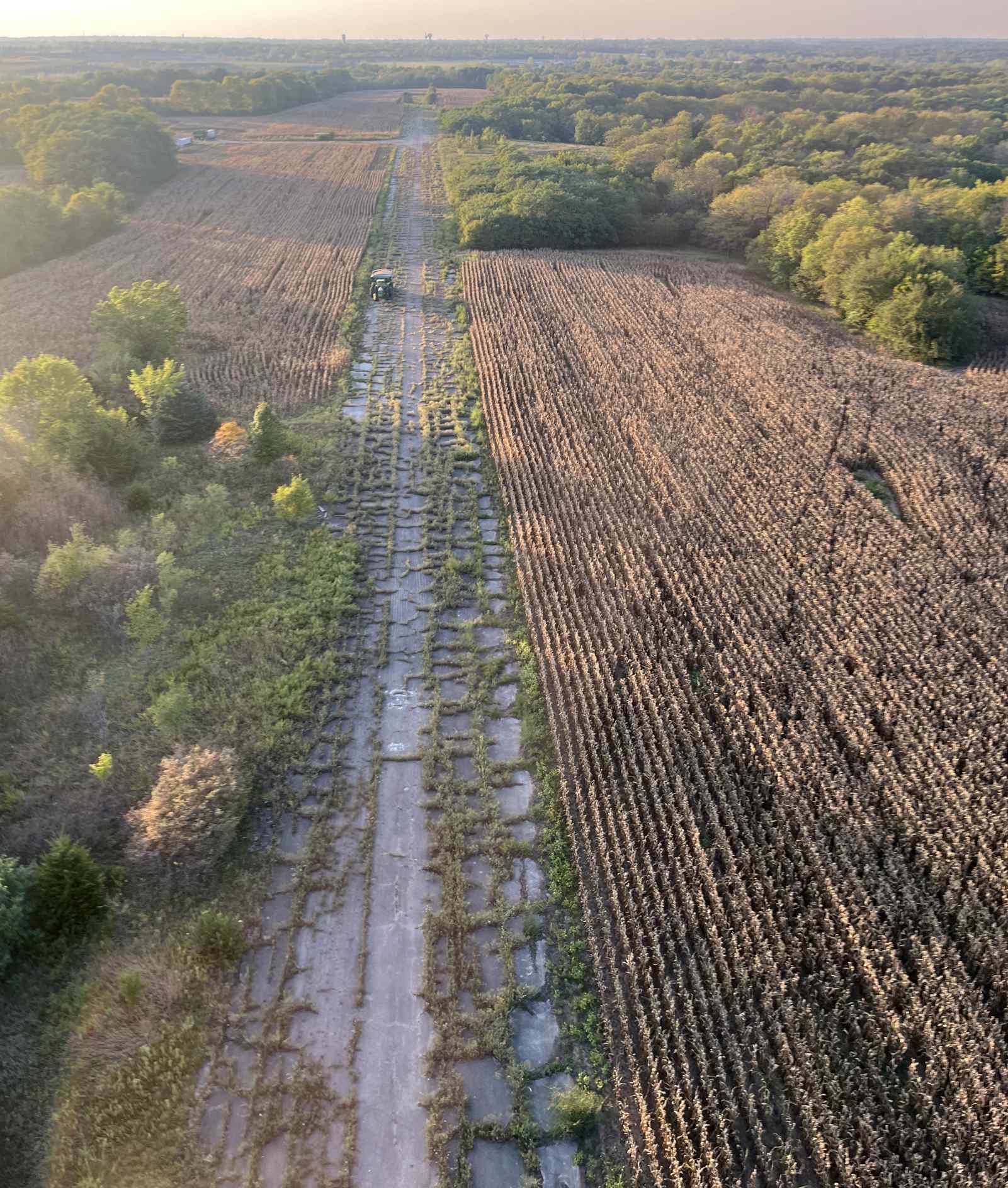 A 10/1/23 aerial view by Thor Shelton looking northwest from his paramotor at the remains of the Lake Winnebago Airport runway.