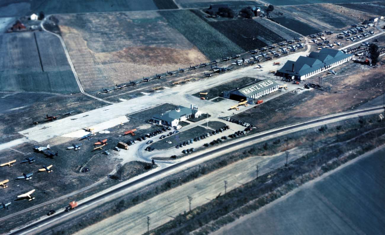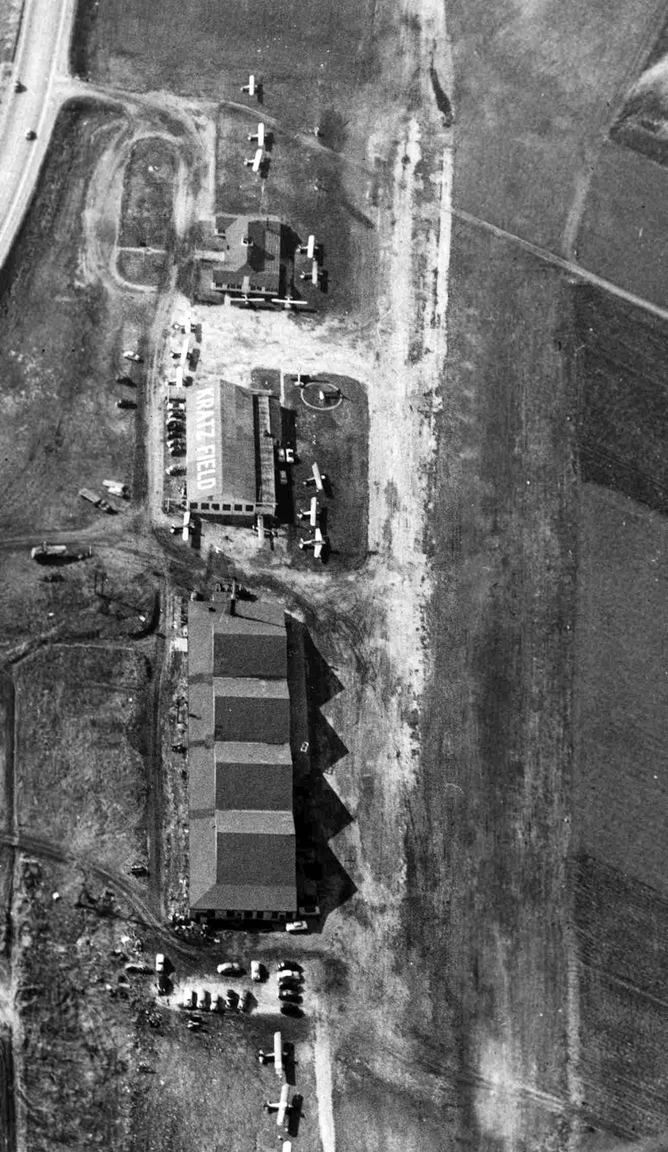 The heyday of Haerr Field was depicted by a 1/1/03 aerial view looking northwest, showing no less than 32 aircraft gathered at the field,
