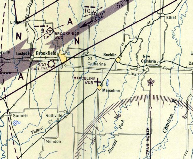 Marceline Airport, as depicted on the March 1946 Kansas City Sectional Chart.