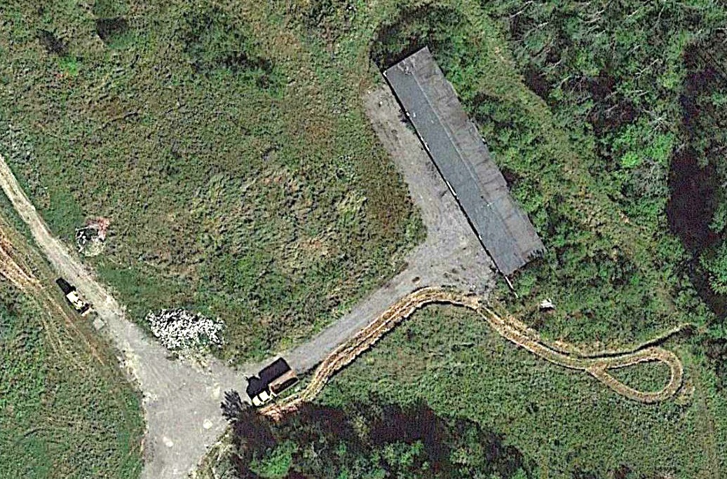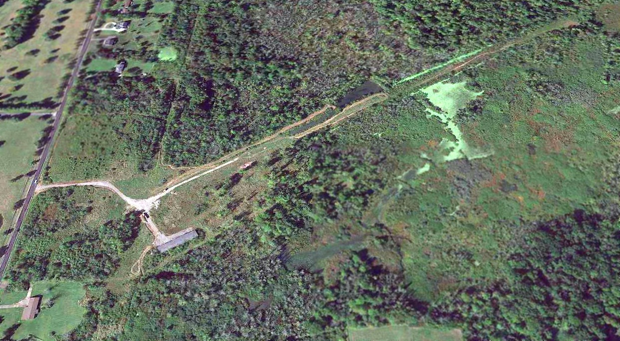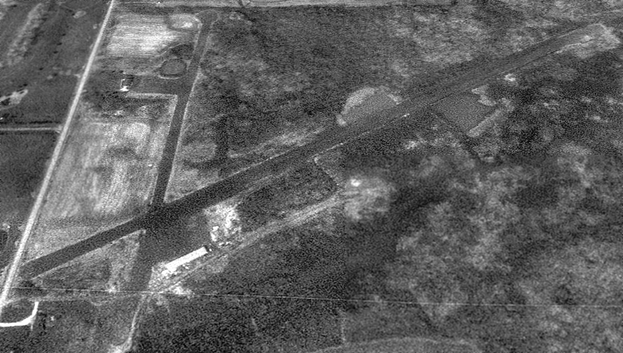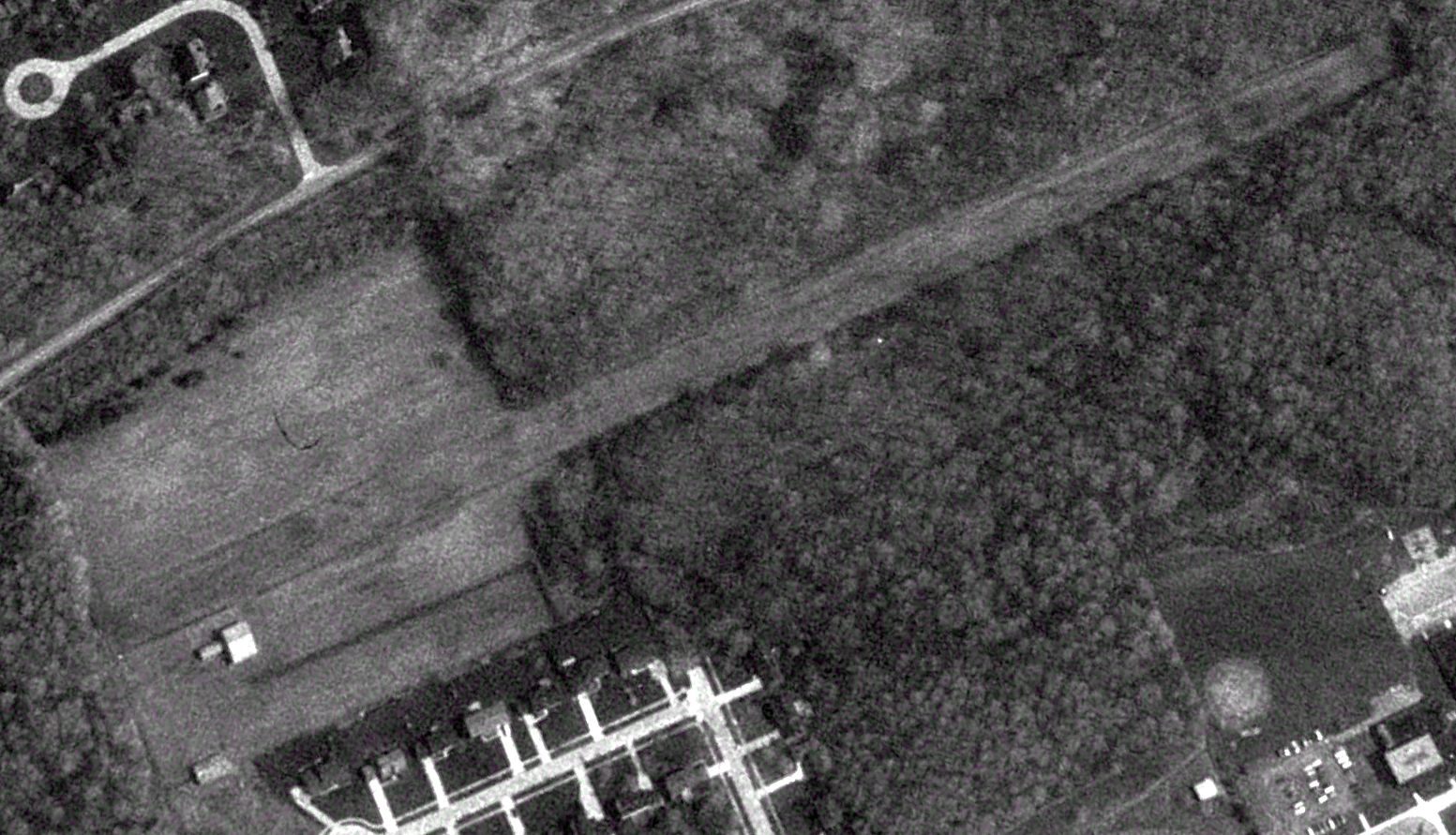 A 2023 aerial view looking northeast at Harper Ridge Airfield showed a dramatic difference compared to the 2003 photo, with the runway & clearing having been allowed to overgrow, and their outline only barely recognizable.