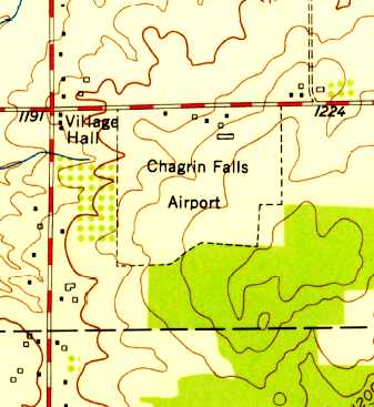 It depicted Chagrin Falls as having a paved northeast/southwest runway, with several hangars on the north side.