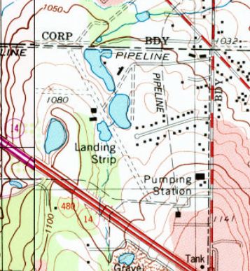 The 1996 USGS topo map still depicted the airfield, labeled simply "Landing Strip",
