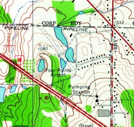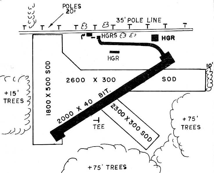 The airport at the time had a concrete runway that was 2,400'. There were also one or 2 sod strips & a hangar/office.