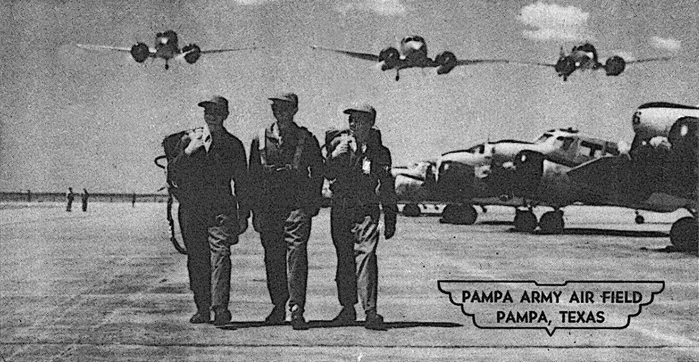 A 1944 photo of flight crews & AT-17 trainers at Pampa Army Air Field.