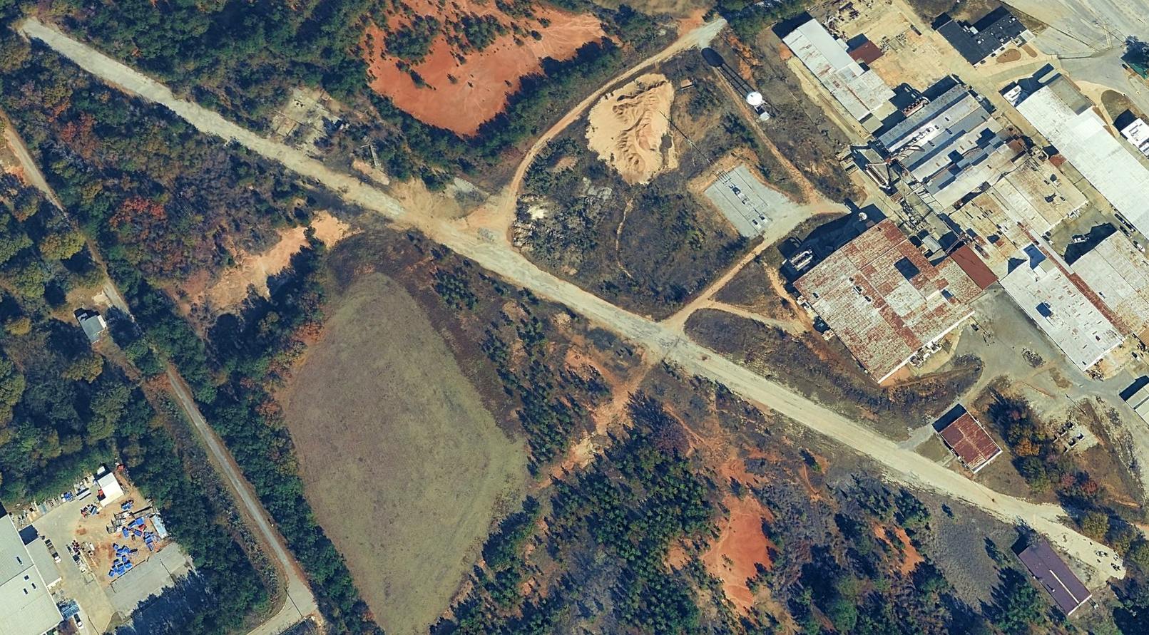 A May 2022 photo looking southeast at the former Camp Hill Airport hangar.