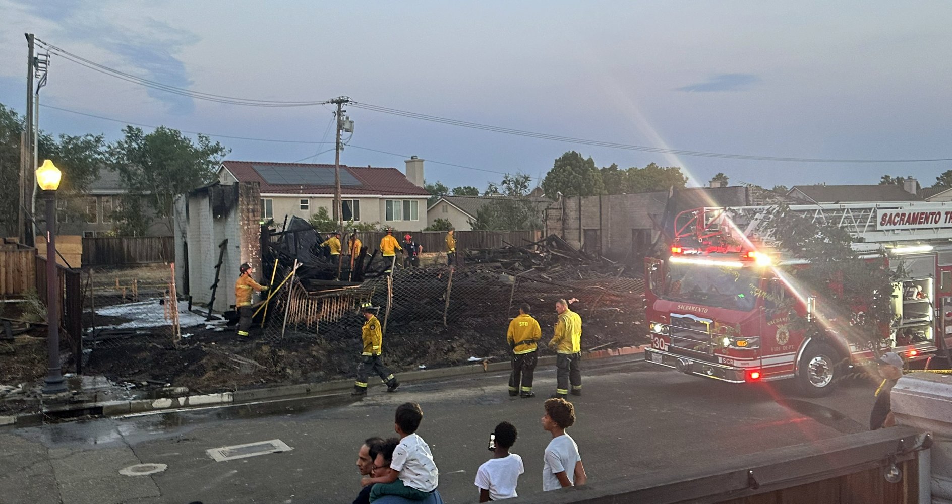 A photo by Tom Hempel of the remains of the Natomas Airport hangar after it sadly burned to the ground on 7/13/2024. Tom reported the fire was due to electrical issues: “It was very much a not-to-code fire trap.”
