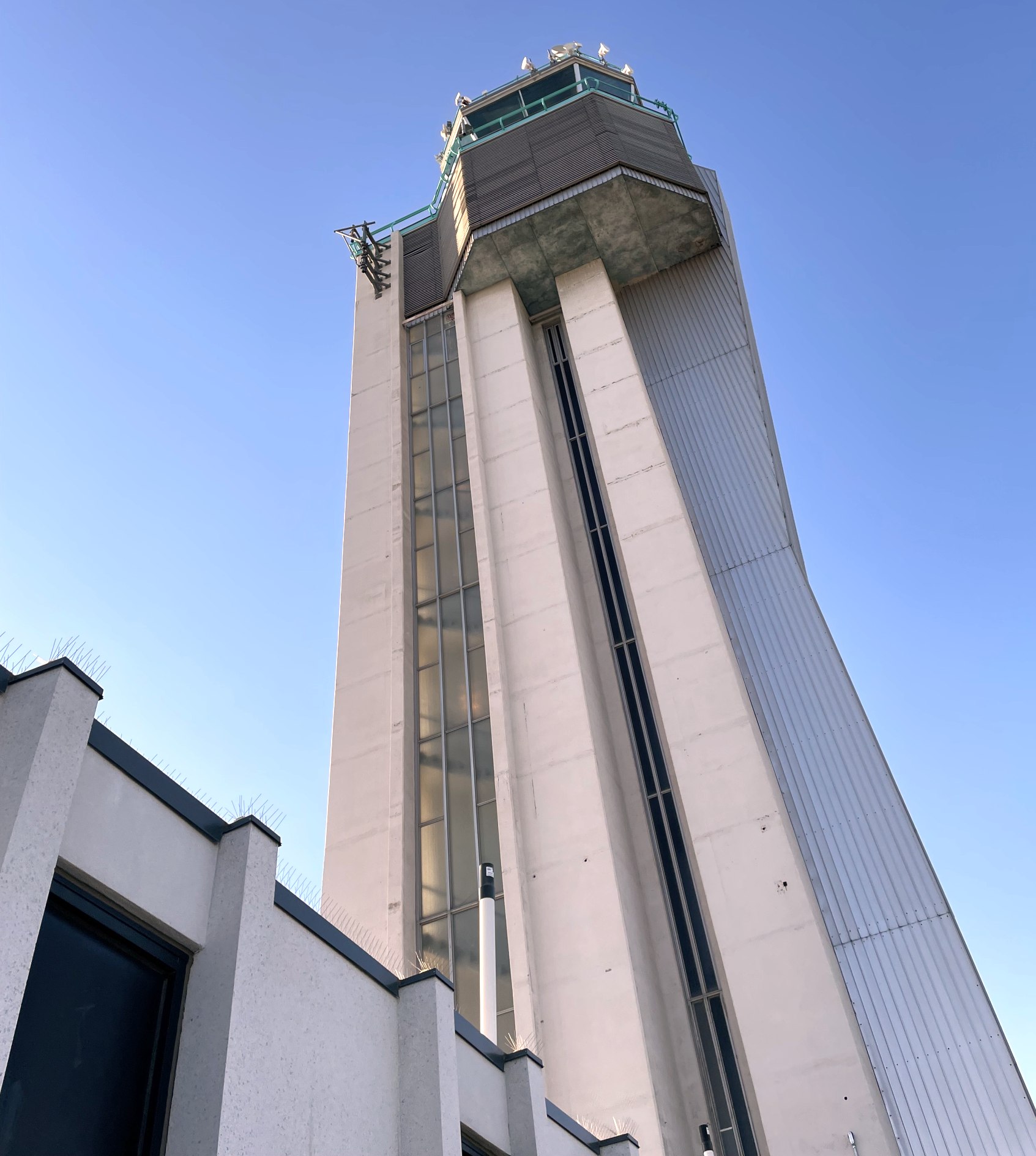 A 2025 photo by Christian O'Brien of the exterior of the former Stapleton control tower.