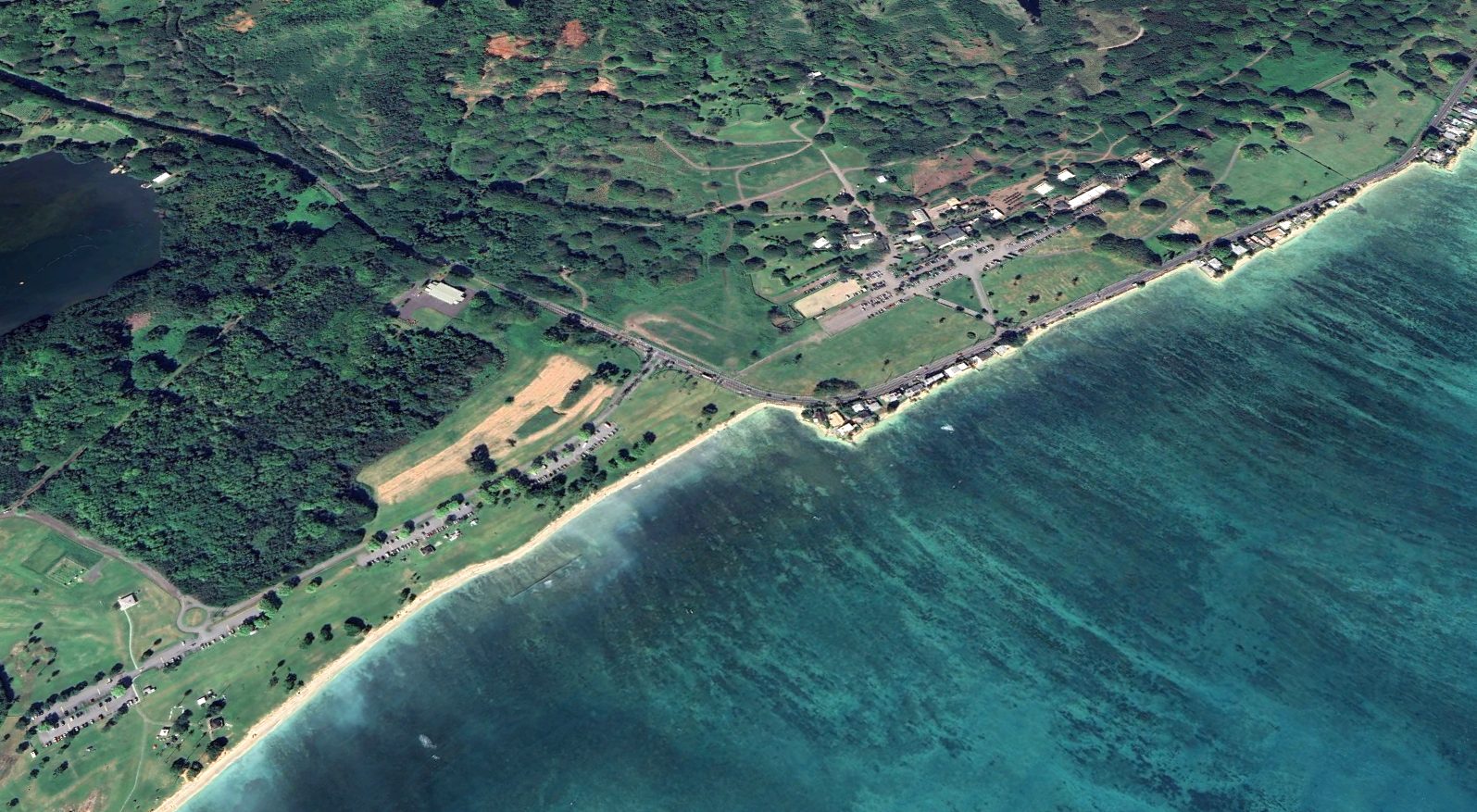 A 2004 aerial view looking south at the former Haleiwa Fighter Strip runway.