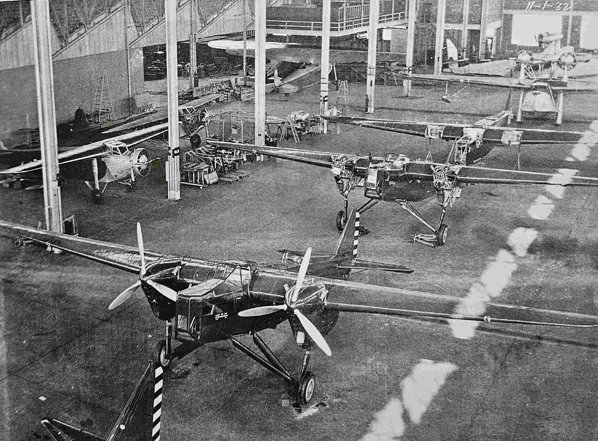 A circa 1930s photo General Aviation Corporation's Baltimore YO-27 production line.