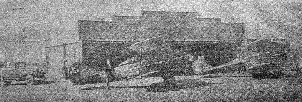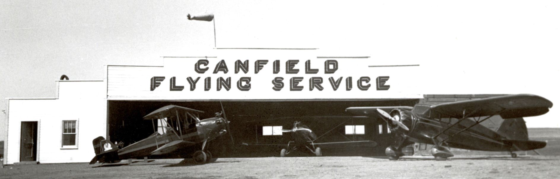 showing 3 unidentified planes in front of the hangar marked “Canfield Flying Service”.