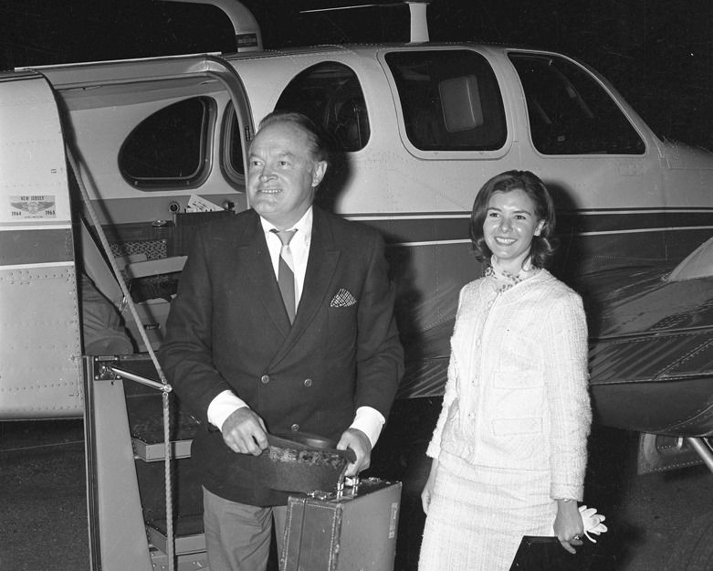 A 1965 photo of Bob Hope flying into Red Bank Airport in a Beechcraft to receive an honorary degree from Monmouth College.