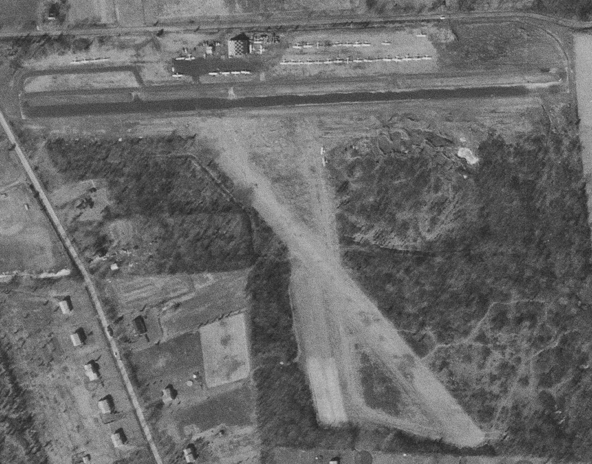 Thanks to Aaron Gould for pointing out this airfield, and to James G. for providing further historical background.