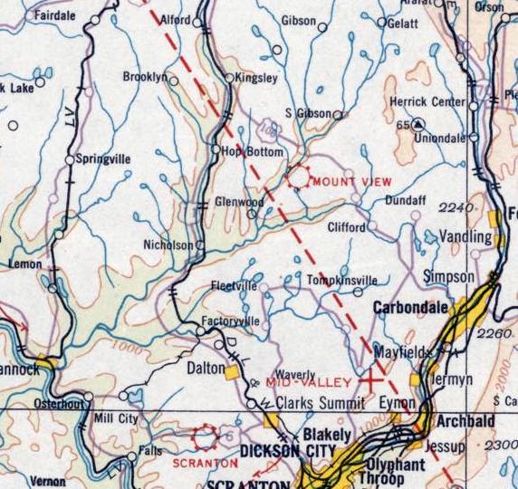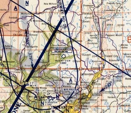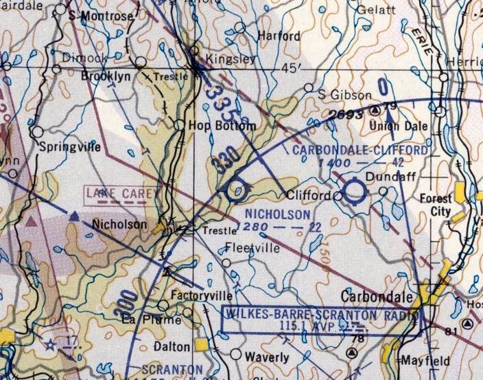 The last aeronautical chart depiction that has been located of Scranton Municipal Airport