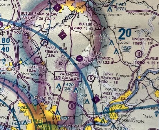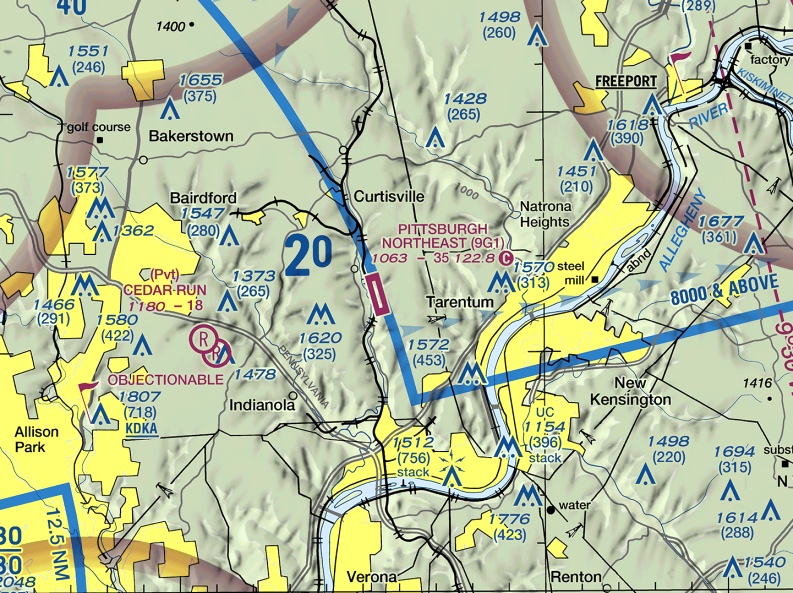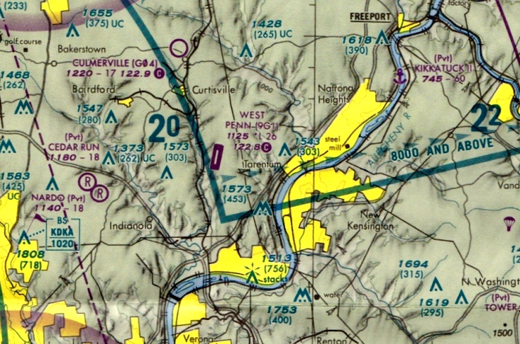 The 1976 Pittsburgh Local Aeronautical Chart (courtesy of Mike Keefe)