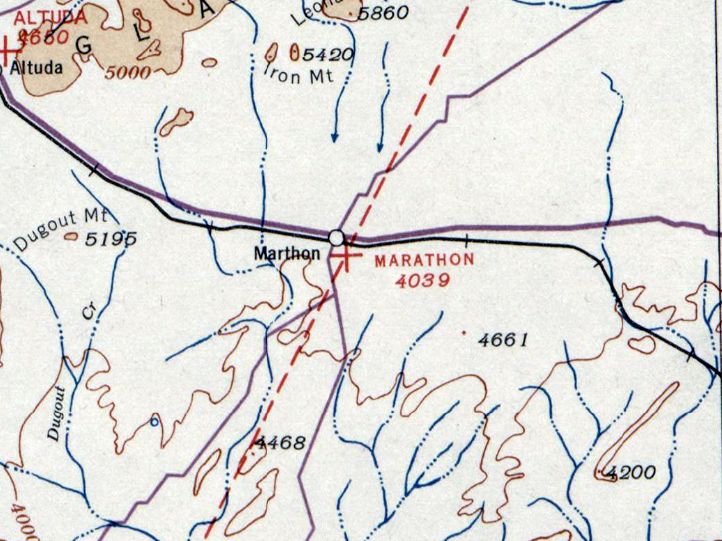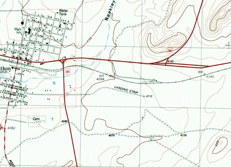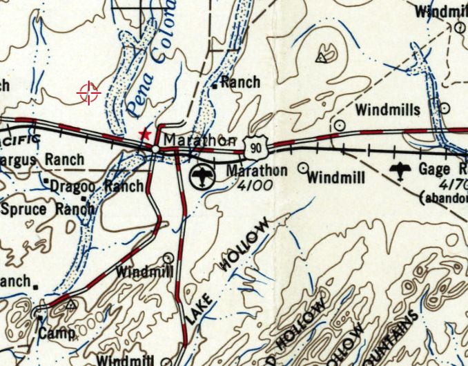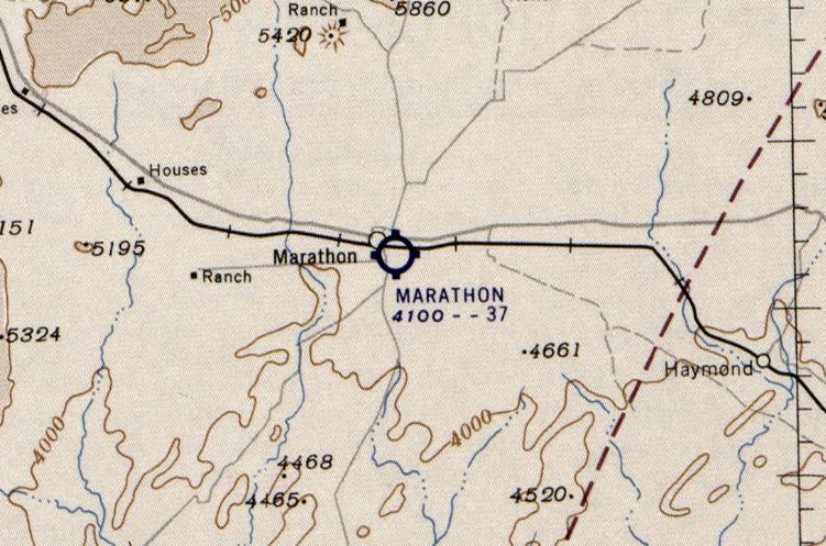 The last aeronautical chart depiction which has been located of Marathon Airport was on the August 1957 El Paso Sectional Chart.