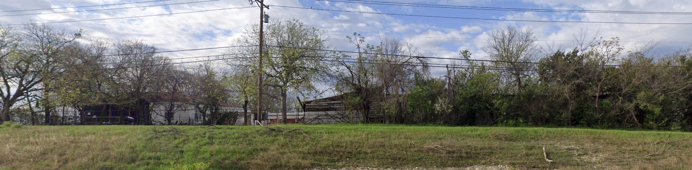 A 2024 photo looking southwest at the last remaining former Belton Airport buildings.