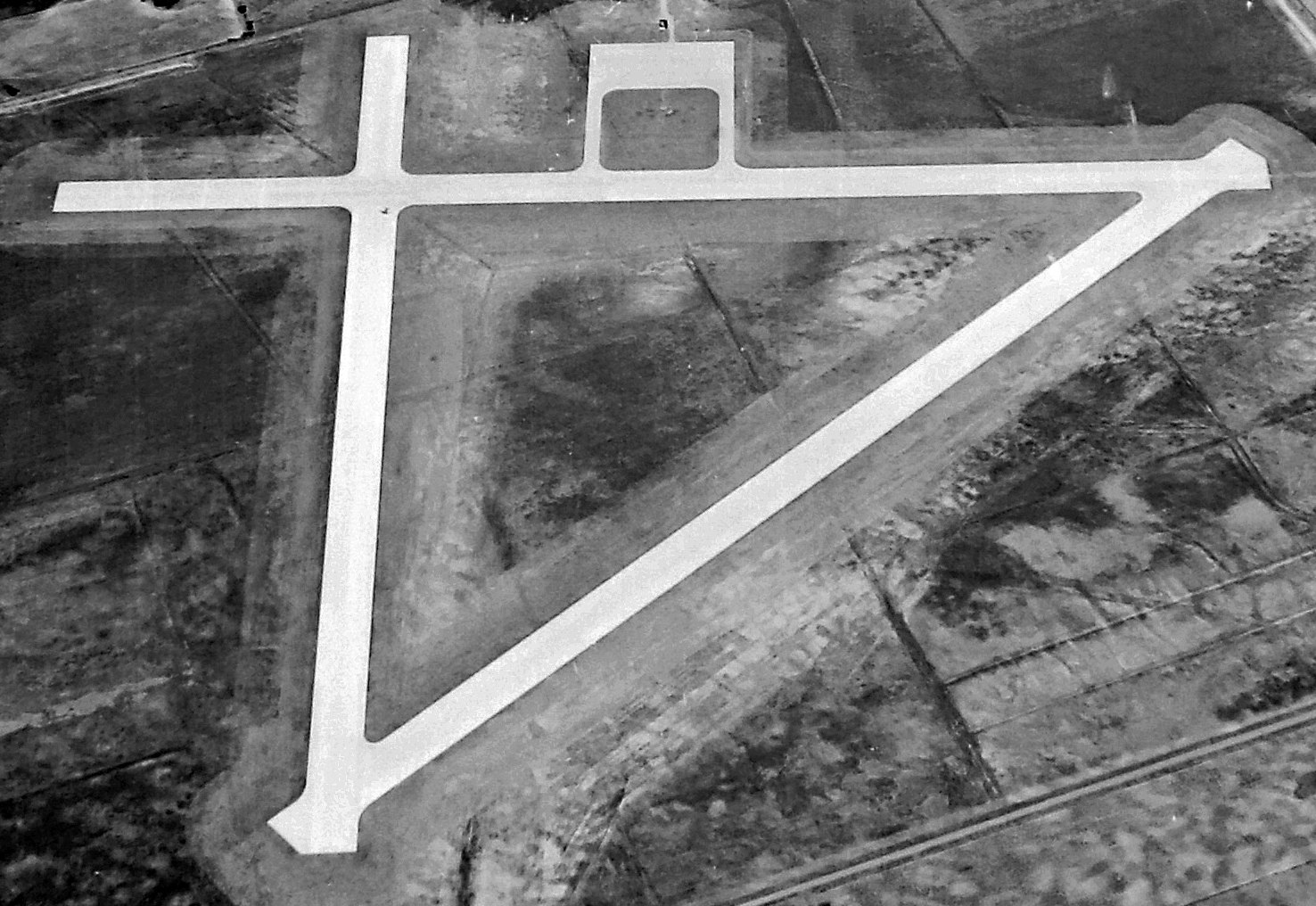 The Army Air Forces leased approximately 493 acres & a large, grass (all-way) landing field was created.