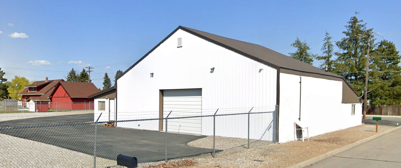 A 2025 photo of the former Lemen Airpark hangar which remains on the northeast corner of the site, on the southwest corner of 16th Avenue & Adams Road.