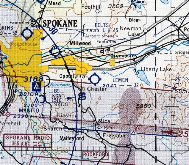 as it was not yet depicted on the 1944 Spokane Sectional Chart.
