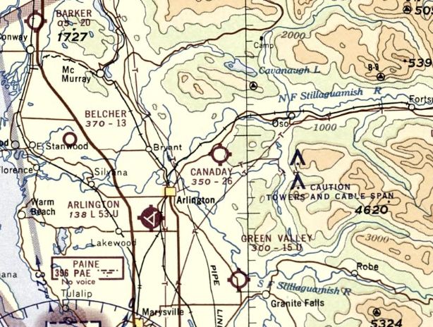 The last depiction which has been located of Canaday Field was on the 1971 Bellingham Sectional Chart, which depicted it as having a mere 1,300' unpaved runway.