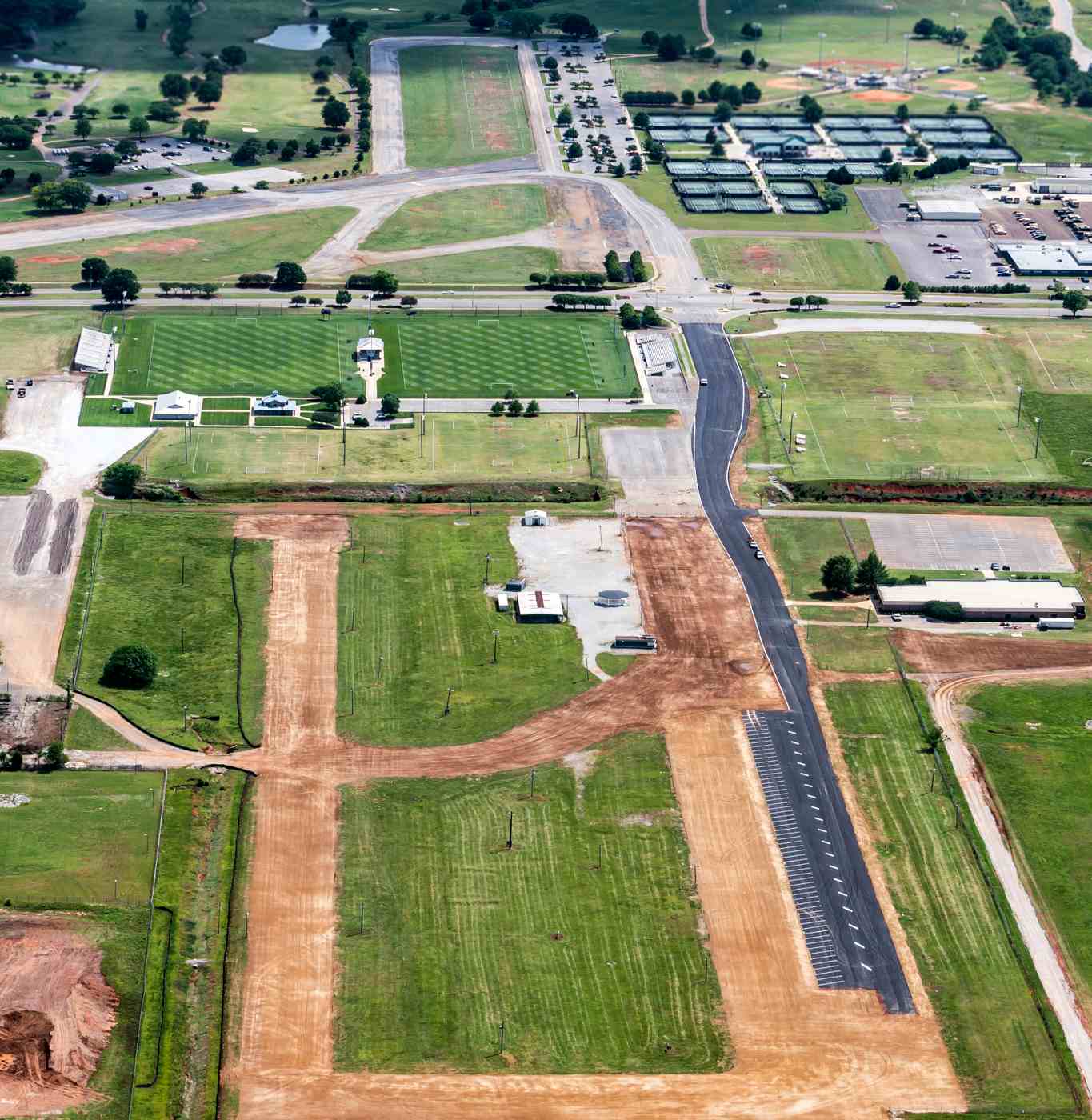 Southeast of this are more athletic fields, a children’s play area, fire station, fire/police training area,