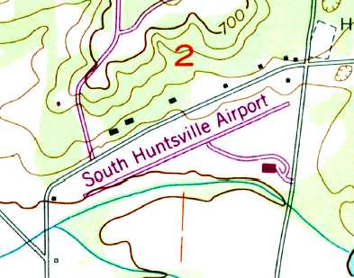 The South Huntsville Airport, as depicted on the 1975 AL Highway Department Map