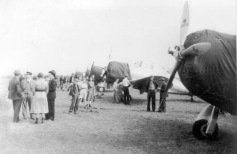 A circa 1938 photo of what appears to be a display of Seversky P-35 fighters at the Huntsville Flying Field / Mayfair Airport (courtesy of www.huntsvillerewound.com, via Billy Lenox).