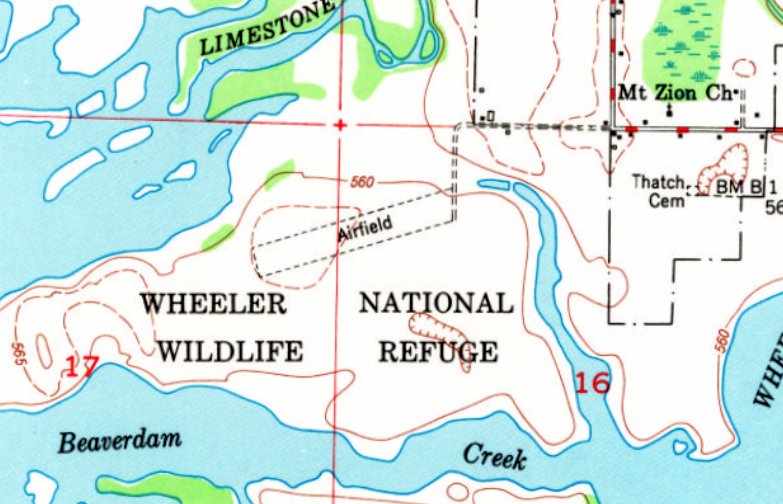 The Sectional's Aerodrome table described Beaver Dam Field as a municipal airfield having a single 2,000' runway, but noted it as "Closed - TVA Field."