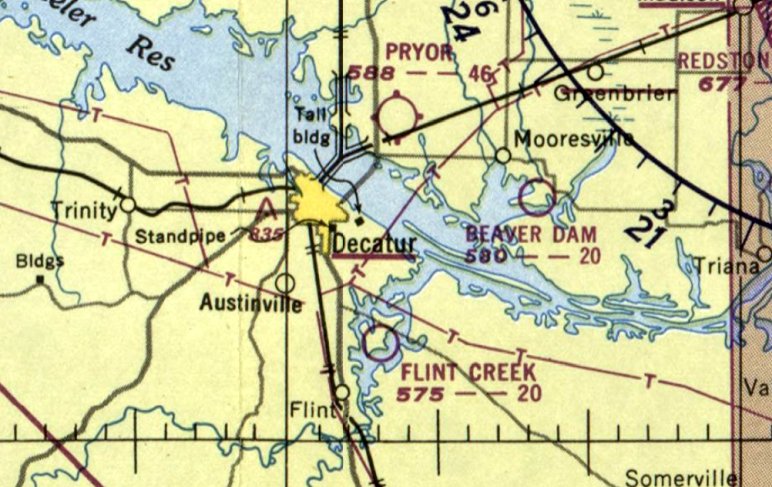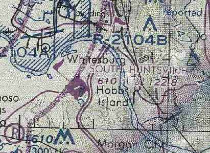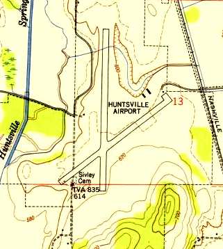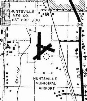 The last aeronautical chart depiction which has been located of the original Huntsville Airport