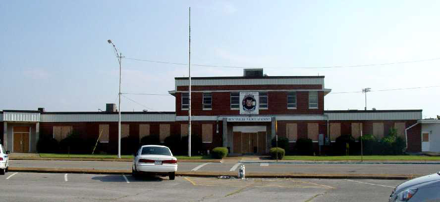 A July 2006 picture by Richard Sims of the Huntsville terminal building, with a “Huntsville Police Academy” sign.