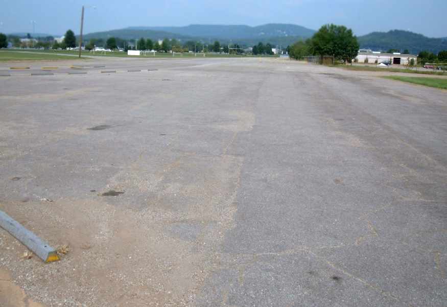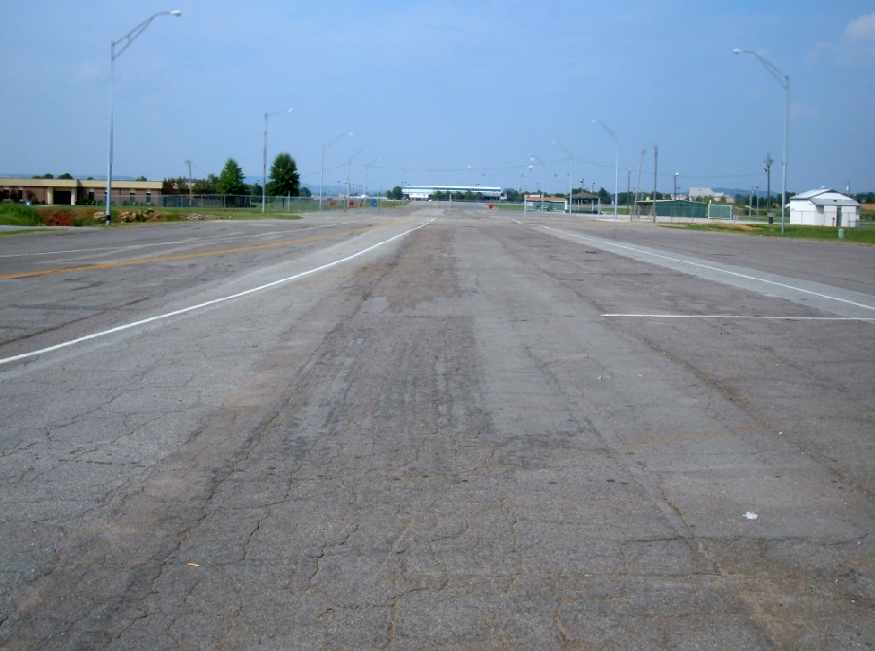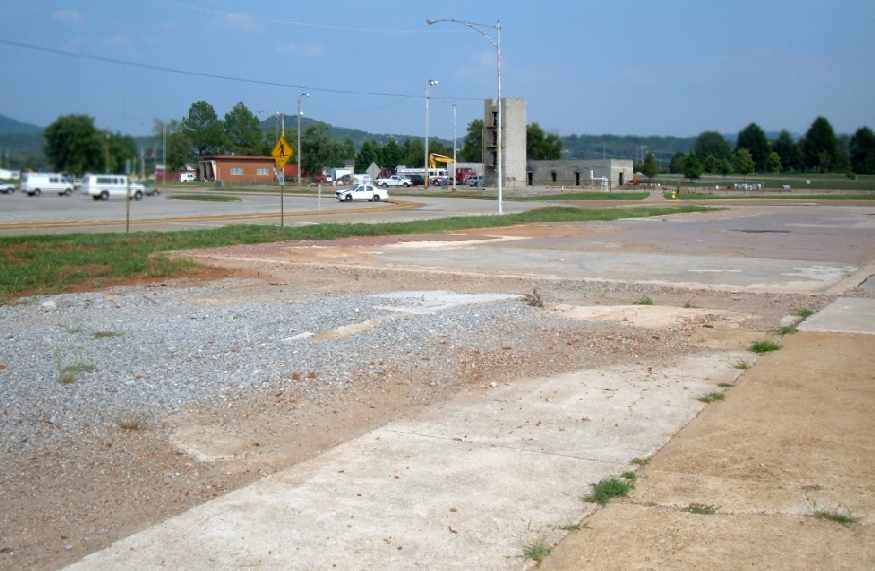 A 2007 photo by Ron Plante looking east at the site of the Huntsville Airport control tower / terminal building, with the fire training area in the background.