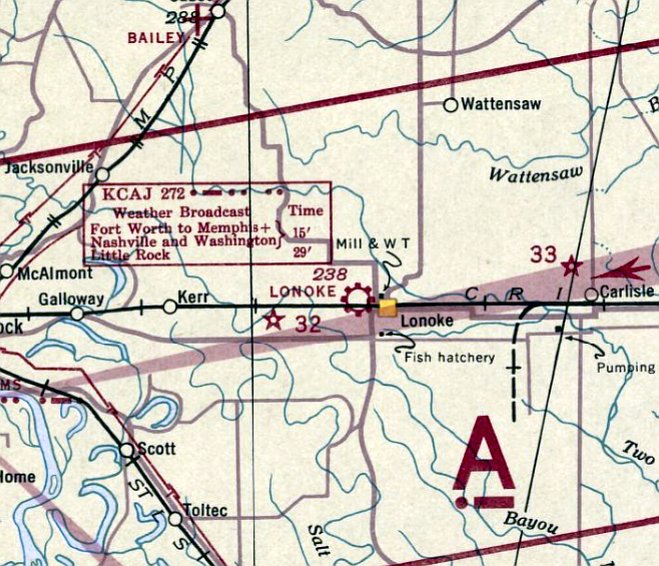 However, no airfield in Lonoke was nor depicted on Little Rock Sectional Charts from 1942/44/45,