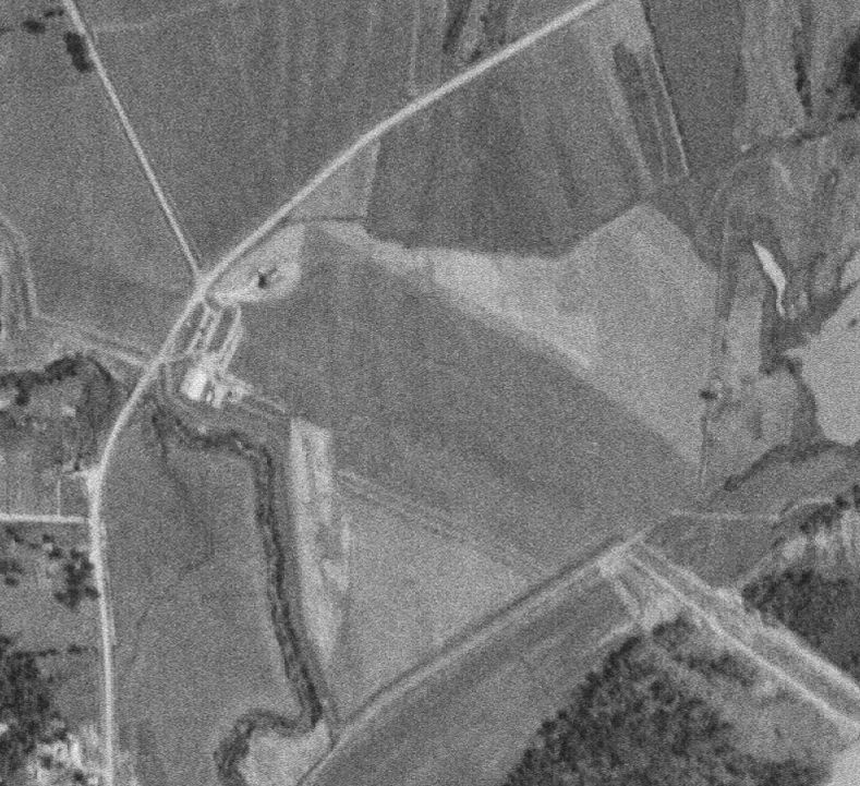 A 1949 USGS aerial view depicted Toney Field as an irregularly-shaped grass airfield with some buildings on the west side.