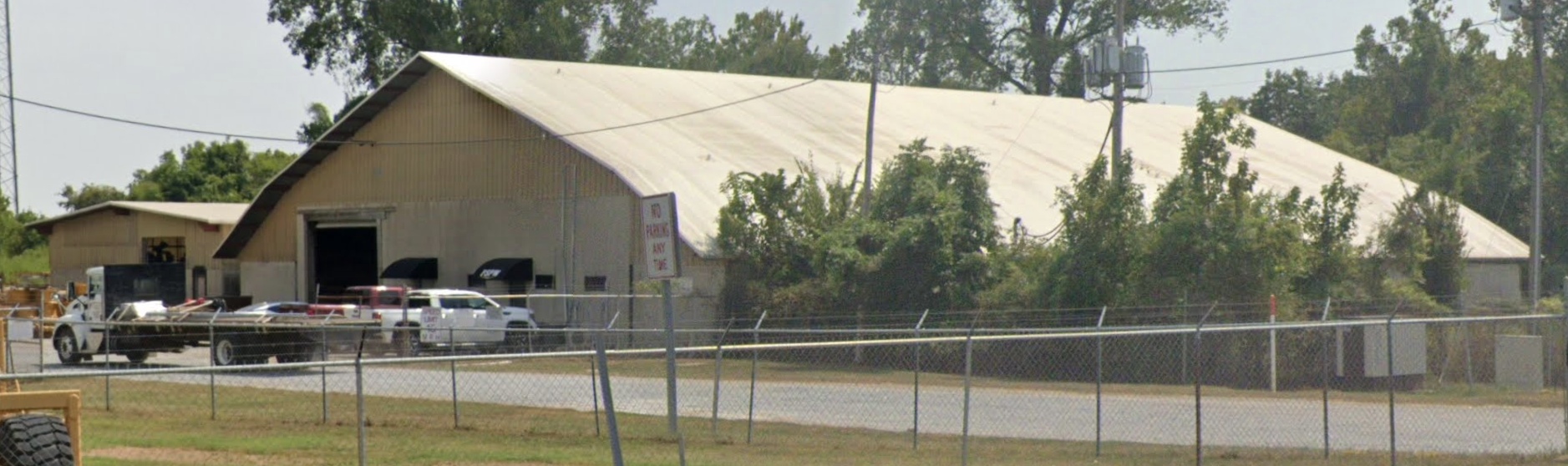 A 2023 photo looking southeast shows the former Toney Field hangar remains intact, reused by a business.